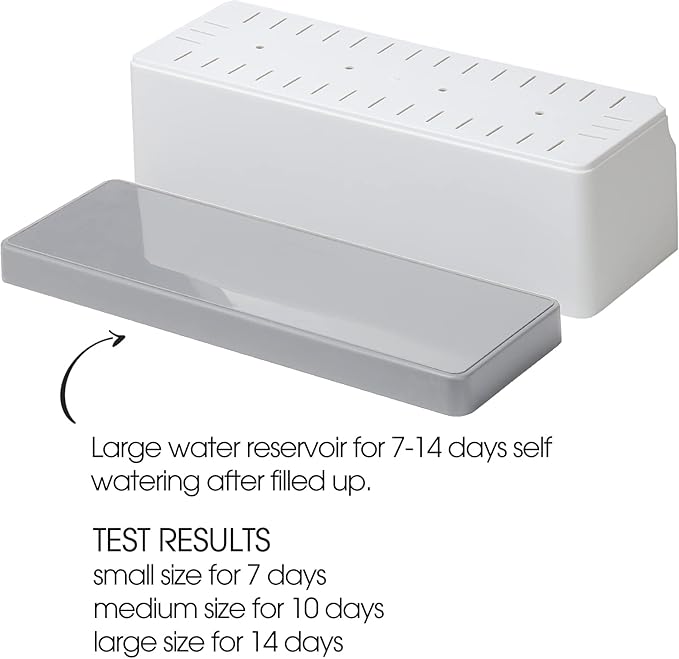 - 【SELF WATERING】Every self watering planter comes with a matched water reservoir and a cotton wick that draw water up to the potting soil to keep the soil at a fairly consistent moisture level, it can offer 7-14 days self watering after filled up. (The rate of water consumption depends on the potting soil and weather.)