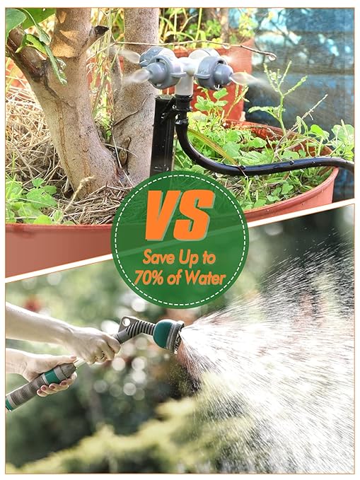 - 🌱 Wide Application: These watering system kits are perfect for indoor and outdoor planting, greenhouse, plant pots, lawns, garden, flower beds, patio, and etc. It can works while you're on vacation, so don't worry about your plants during the holiday, just relax and have fun!