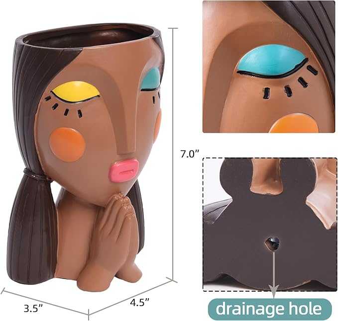 - 【Hand Painted Colorful Planter】The face planter pots were pure hand painted which show out the original African style. Every planters were painted by artisans, which means each of them are unique. NOTE: Purely hand-colored face planter may slightly different from picture.
