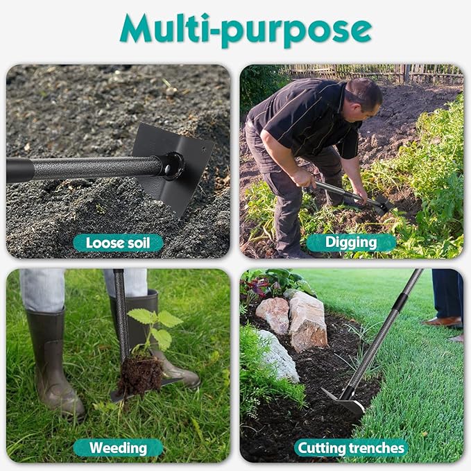 - Professional Gardening Tools: Our digging hoes are made for gardening enthusiasts.This digging hoe is easy to use and install for both beginners and seasoned gardeners.We guarantee you can complete its installation within 2 minutes.
