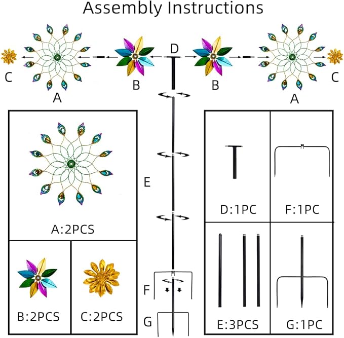 - 【360 Degree Rotation】 Garden wind spinners with roller bearing design can rotate 360 degrees around the stake when rotating.