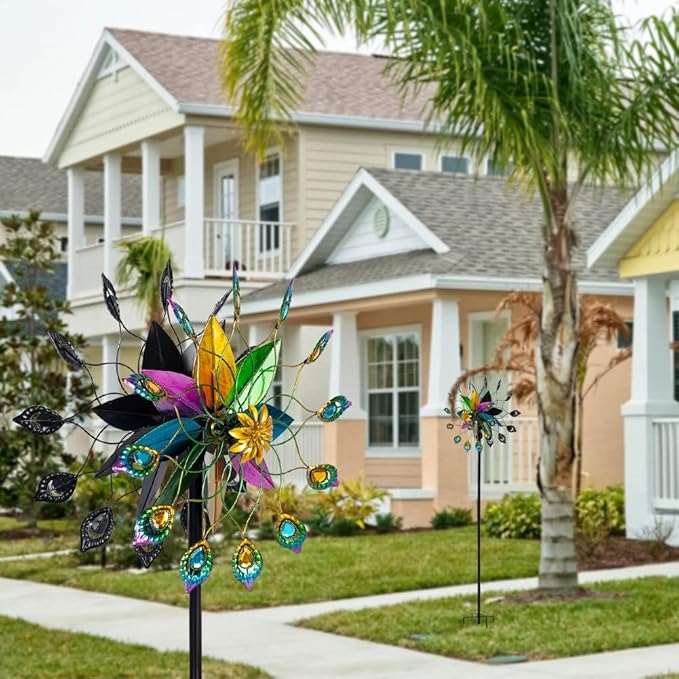 - 【Stable and Balance】 Yard decorations outdoor wind spinner has solid metallic 5-prong base construction more stable and balance, not easy to sway or fall down.