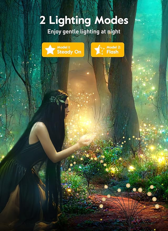 - Auto On/Off: The outdoor garden lights will be auto on at dusk and auto off at dawn.No wire connection and household electricity required, just place the solar firefly landscape lights in sunlight, and no need manual adjustment, it will charge at day and light up at night automatically