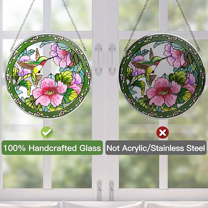 - 【Note】Hummingbird Suncatcher Stained Glass Window Ornaments Are Made of Glass,And Each Product is a Pattern Carefully Painted by Hand by Workers With Fuel; It's Not a Simple 3D Proofing Pattern, it's Not a Acrylic and It's Not Organic Glass Eithermaterial.If You Need a Real Glass Ornament,You Can Choose This Hummingbird Suncatcher.