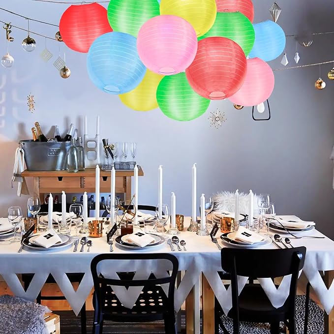 - Package Includes: Contains 10packs Multicolor 10inch Silk cloth lanterns. KNONEW outdoor silk lanterns are the perfect touch for any event! Whether you're planning a wedding, birthday, or backyard bash, these silk lanterns light up the space and add a fun, festive vibe! They’re the ideal size—10 inches—not too big, not too small, just enough to "WOW" your guests.