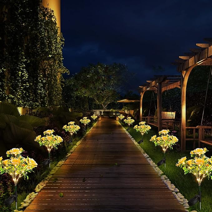 - ✿✿2024 New Solar Panel & Auto Garden Solar Lights Outdoor - The upgraded solar panels increase the efficiency of converting solar energy into electricity to 35%, allowing the solar garden lights outdoor to charge faster during the day and stay lit for up to 10-12 hours during the night! Making them a hassle-free addition to your outdoor decor.