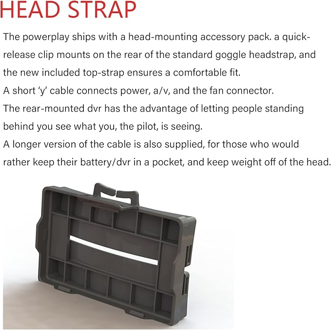 - The powerplay ships with a head-mounting accessory pack. a quick-release clip mounts on the rear of the standard goggle headstrap, and the new included top-strap ensures a comfortable fit.
