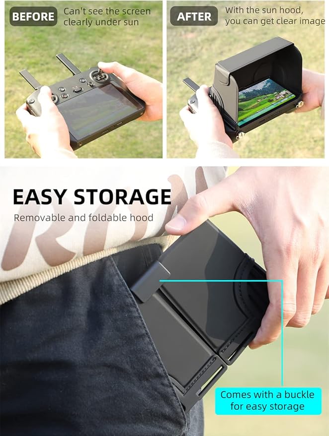 - This RC sunshade is detachable and easy to fold, equipped with a storage buckle for easy storage. No-disassembly bracket: It can be stored in remote control bags without disassembly.