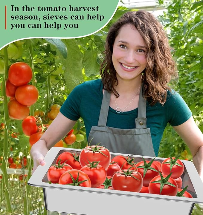 - 3;[Garden screening sizes] Choose from 2 different sifting screen sizes (0.23", 0.35"). Each one is made of the same high-quality stainless steel as the frame. Neat and even hexagonal mesh surface smooth, and easy to work with. garden riddle will hold up to even the most vigorous use.