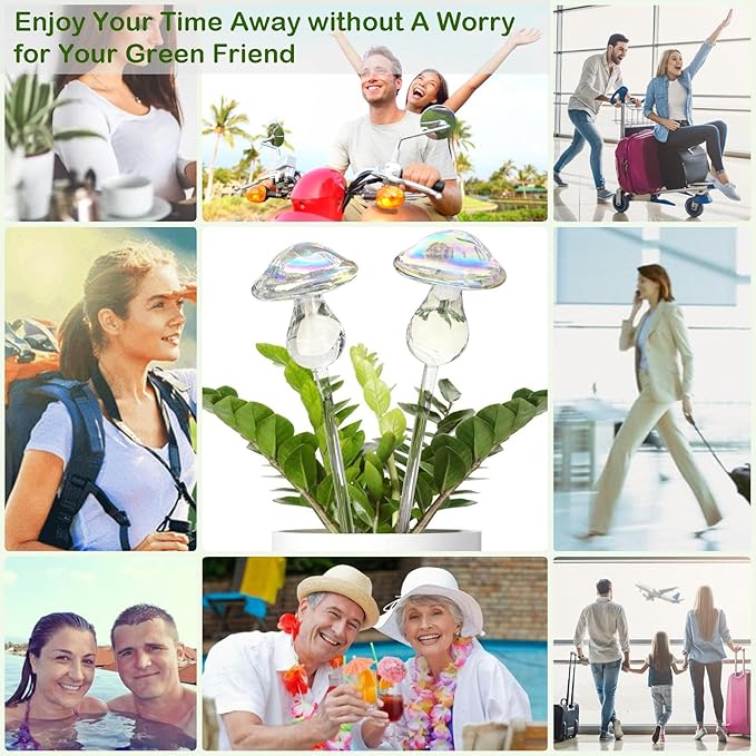 - π Dimension & Package: The total height of the mushroom watering globes is 10", of which the height of the mushroom is 4". 2 Mushroom self-watering glass globes are packed in a polyfoam box, no worried about break during shipping.