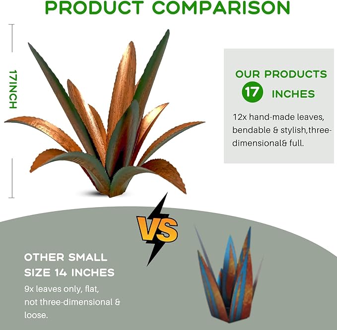 - 【Eternal metal agave】This is a rust-style metallic agave, made from metal and painted with blue high lights in contrast with its rusty steel style finish creates a very unique juxtaposition in the spring you will find a variety of beautiful and lush foliage unique to the Golden State.
