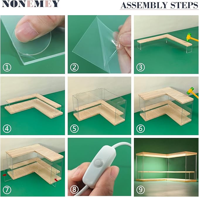 - 【Note】We provide disposable gloves and clean cloth to prevent fingerprints and dust and the acrylic display case is equipped with light. You need to tear the layers protective film on the acrylic and the light surface before you start to the assemble.