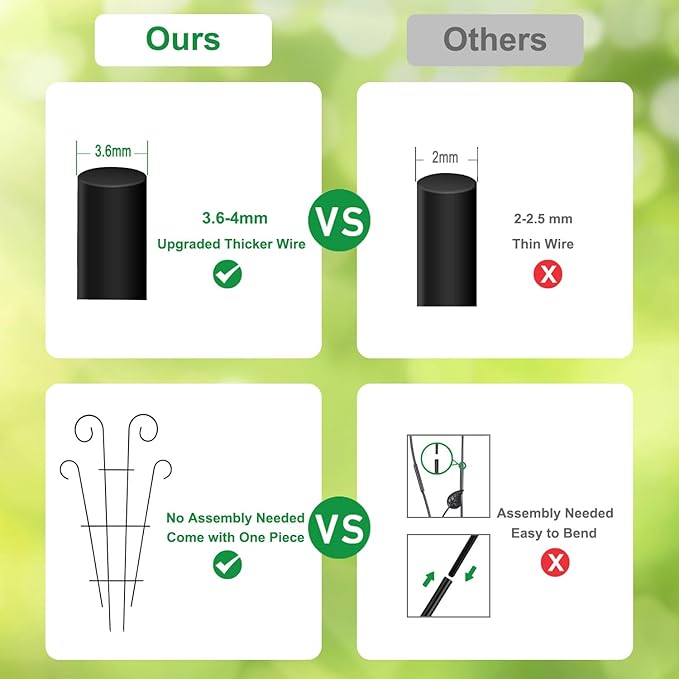 - STURDY COATED METAL: Made of high quality steel wire with black powder coated finish, our metal garden trellis for climbing plants are super sturdy, weatherproof and provide strong support for flowering vines or bushy climbing plants indoor and outdoor