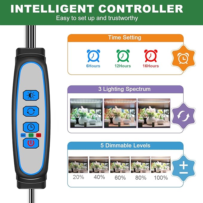 - Upgraded Smart Controller: Our plant light strip features 5 dimmable levels, 3 spectra modes (white, warm white and red, mix light), and upgraded automatic on or off timer 6H, 12H, 16H; To create the optimal growth environment for your plants