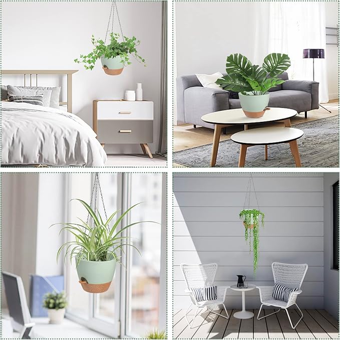• Removable Trays - Hanging pots for plants indoor tray can be removed as a reservoir for self-watering, where excess water from the self-watering plant pots is drained into the tray, which stores a certain amount of water for the plants (7-14 days). You don't have to worry about your plants running out of water when you're away on a business trip or traveling.