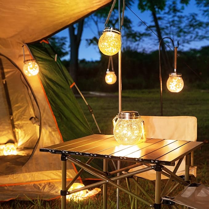 - Solar Powered: Solar hanging lanterns for outdoors are equipped with high-efficiency solar panels and built-in high-quality batteries, which are brighter than other light strings crackle glass ball. No need for extra electricity