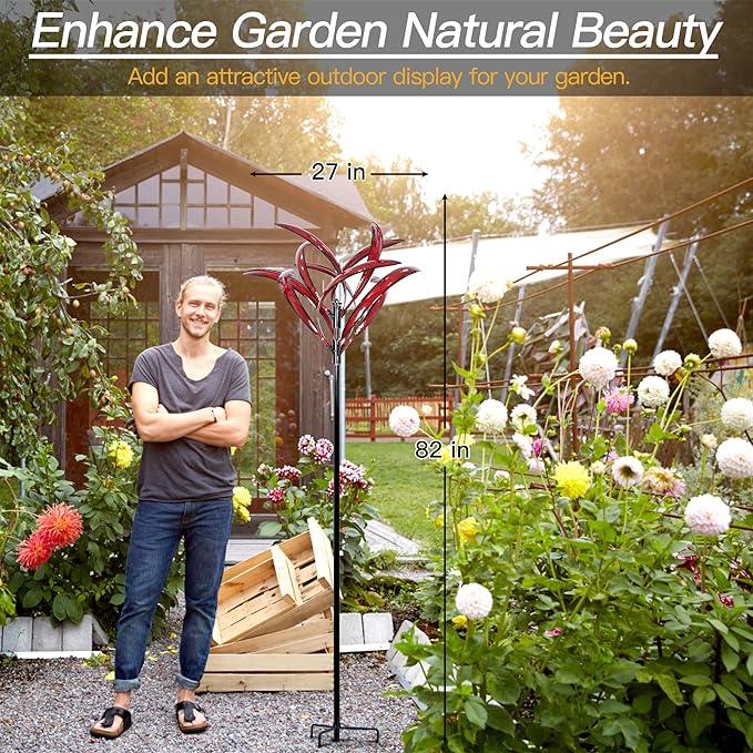- ENHANCE GARDEN NATURAL BEAUTY: Add an attractive outdoor display by lining kinetic metal wind spinners in your garden