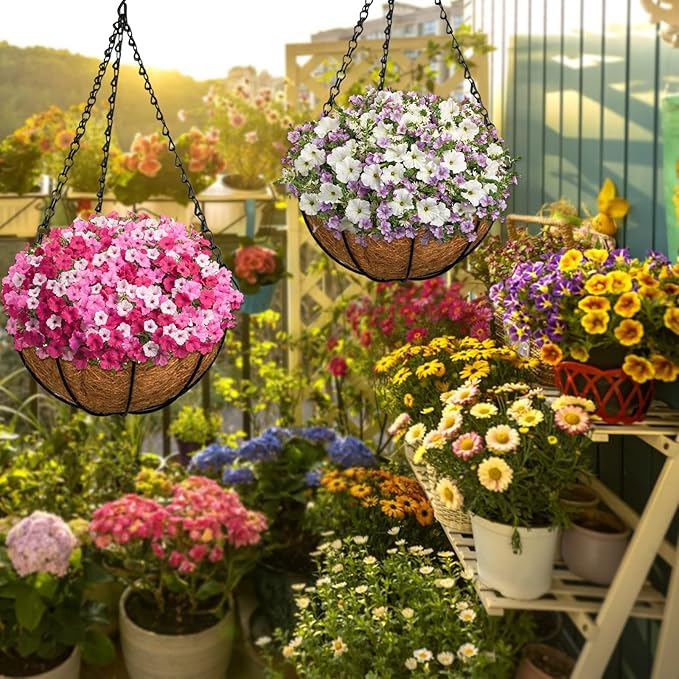 - Wide Applications: Hanging basket planter is suitable for all plants, like flowers, grasses, mosses, succulents, cacti. These hanging plant baskets can be hung in your front porch, ceiling, doorways, windowsills, balconies, garden and fences to make your life more vibrant and beautiful