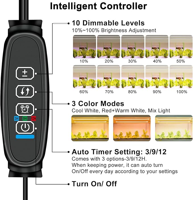 - [3 Spectra Modes & 10 Dimmable Level]- Our plant light strip features 10 dimmable levels and 3 Spectra Modes (white, cold white and red) that can meet the needs of your plant when it is at different growth stages.Keep your plants healthy and vibrant at all times with our grow light strips.