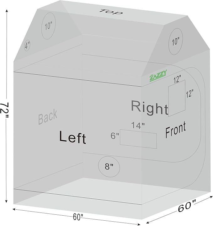 zazzy Grow Tent 60"x60"x72" Roof Cube Plant Grow Tents with Observation Window and Removable Floor Tray for Indoor Plant Growing Seedling 5x5