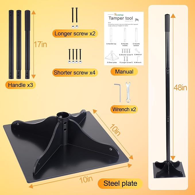 - Efficient Soil Compaction: Our hand steel tamper use a 10" plate offers wider surface area, enabling you to compact larger sections of soil or gravel in fewer passes, saving you time and effort for your solid foundation construction projects.