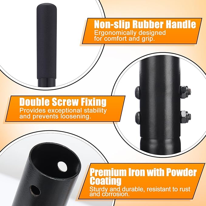 - Ergonomic Handle Design: This soil tamper is designed to provide maximum comfort and control, the rubber handle grip and 48" decent height can provides a comfortable grip and reduces user fatigue, allowing you to work for longer periods without experiencing excessive strain.