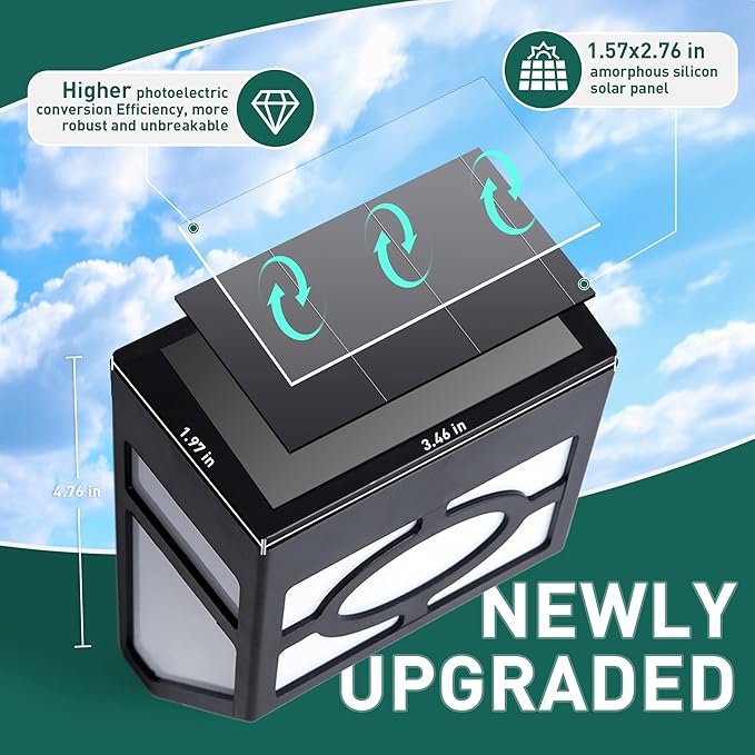 - 【SOLAR DECK LIGHTS】Our lights are the perfect solution for outdoor lighting needs. They are powered by the sun, don't require utility bill. At daytime, the solar panels absorb energy from the sun for 6-8 hours, provide 8-10 hours of lighting at night