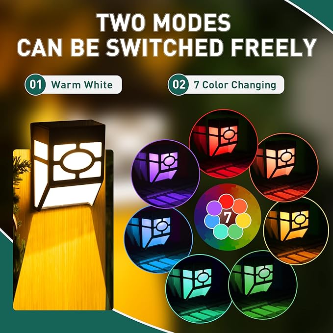 SOLPEX 16 Pack Solar Deck Lights Outdoor, Solar Fence Lights,2 Modes Christmas Garden Decoration Lights,RBG/Warm White LED Decorative Lighting for Garden,Yard,Post,Path&Driveway
