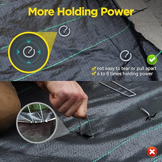 - MORE HOLDING POWER THAN U SHAPE YARD STAPLE: If you're concerned about your landscape fabric tearing or pulling apart, our circle top pin can provide a solution. Our round top pin is 6 to 8 times more powerful than standard U-shape yard staples, securely fastening the landscape fabric to the ground.
