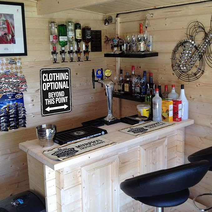 - WIDE RANGE OF APPLICATIOM: These vintage metal signs are not really rusty.( Clothing Optional Beyond This Point ) It is a fun and attractive decoration for your House, Farming, Home, Bar, Room, Bathroom, Kitchen, Office or Garage.