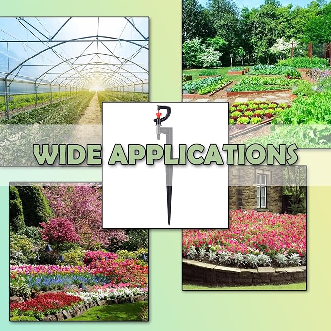 - Wide Applications: Sprinkler drip heads are ideal for flower beds, plant beds, vegetable gardens, vegetable gardens, gardens, lawns, greenhouses, plants, automatic drip irrigation and sprinkler system pots, and even for cooling roofs.