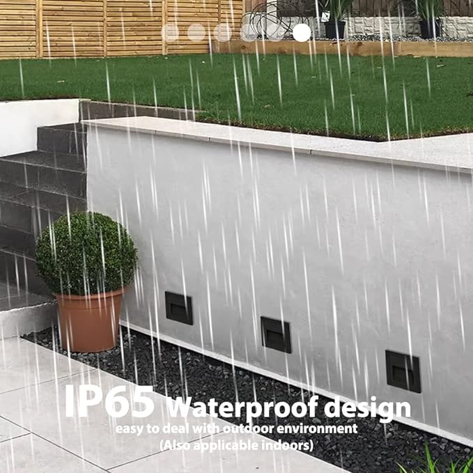 - Good quality: Black shell, warm white 3000K, aluminum corner staircase light step light, IP65 waterproof, suitable for indoor and outdoor; IP65 can prevent the splashing water, but cannot be installed directly under water