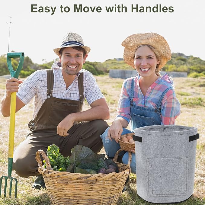 - [Breathable & Durable Material] Garden Planting Growing Bag Made of breathable & durable non-woven fabric, Thickened Non-woven Fabric plant grow bags which is heavy duty felt, planting bags can ensure rapid drainage and provide an ideal growth environment for plants' moisture, nutrition and temperature.Reinforced handles can bear more weight and ensure that they can support a full bag of soil.