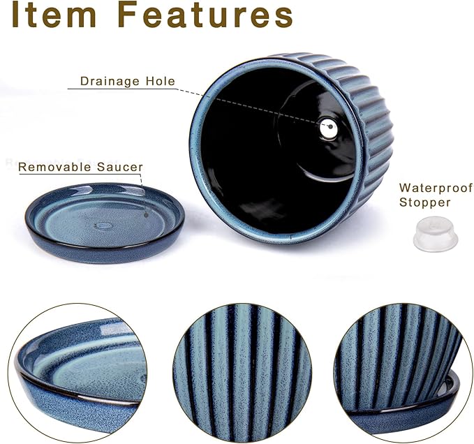- Perfect Decor for Your Plants - This ceramic plant pots can be used as indoor and outdoor, are iedal pots for any plants or flowers, it is suitable for garden, foyer, yard, patio, porch, windowsill, office, hotel, living room, kitchen, bedroom, bathroom, tabletop, shelf,etc.This blue plant pots can brighten up your home and help you create your own oasis. Also, it is a perfect choice for your gardening lovers/family/friends/neighbors as a housewarming /Birthday /Anniversary/Mother's Day gift