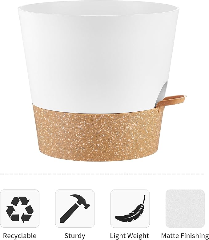 • 【Innovative Self Watering Design】- Our flower pots are equipped with detachable deep trays that can store a large amount of water, enough to supply plants with water for up to 14 days, keeping your plants well fed and hydrated. You don't have to worry about your plants drying up when you are away on a business trip or traveling.