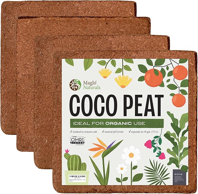 MagJo Naturals 100% Pure Coco Coir 4 Pack (44 Pounds Total) Coco Peat, Listed for Organic Gardening, Coconut Coir - Low EC and pH Balance - High Expansion Coco Fiber for Herbs, Flowers, Planting