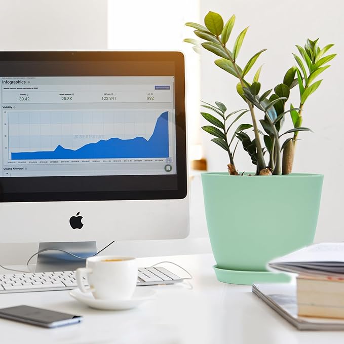 - [Decoration Your Indoor Garden] The round shape modern planters for indoor plants are perfect to decorate your shelf, window sill, desktop, kitchen, living room, bedroom, garden, office, etc. The plants containers gardening makes it possible to grow beautiful plants indoors, on a balcony, or in a tight corner of your garden.