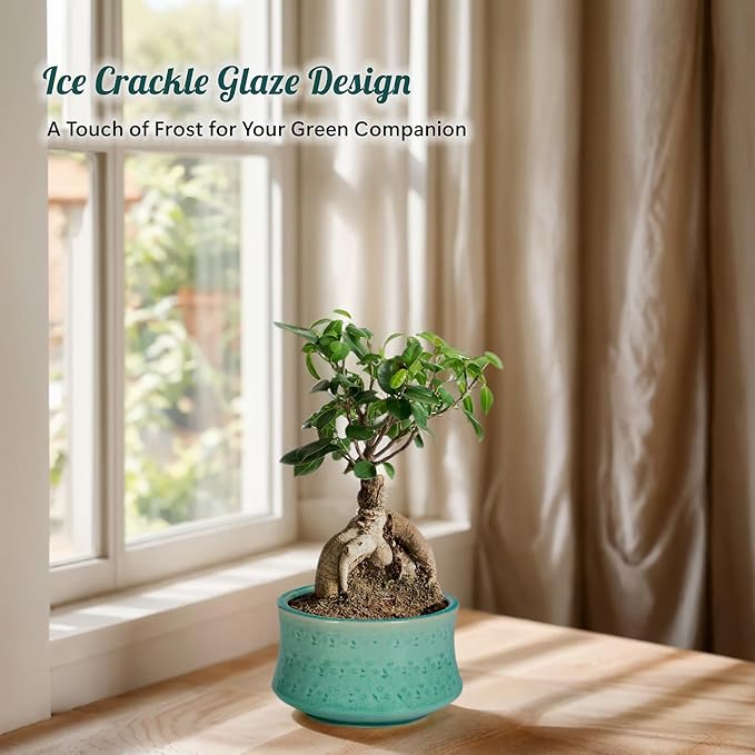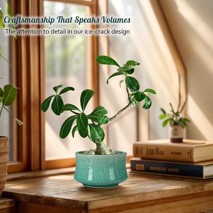 - Minimal But Not Simple: the ice cracks on the surface of the bonsai water pots come from ancient Chinese porcelain firing techniques. The traditional ceramic firing technology makes your bonsai plants breathe more smoothly and thriving.