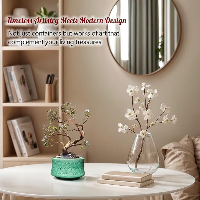 - Beautiful Desktop Decoration: miniature bonsai pots with drainage for coffee table or desk. If you feel tired at work, prepare a cappuccino, taste the sweetness of coffee, and admire the plants you grow,Relax your eyes. So, come to prepare a new home for your cacti or miniature bonsai.