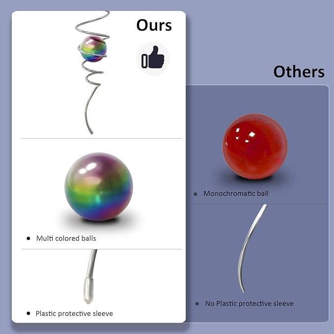 - 【High Quality】11inch height spiral tail made of #304 stainless steel wire,the 2inch colored ball made of pure solid color glass material,have good weather resistant,no fading under sunshine.Better quality than iron material with nickle plating and painting color glass ball in the market.