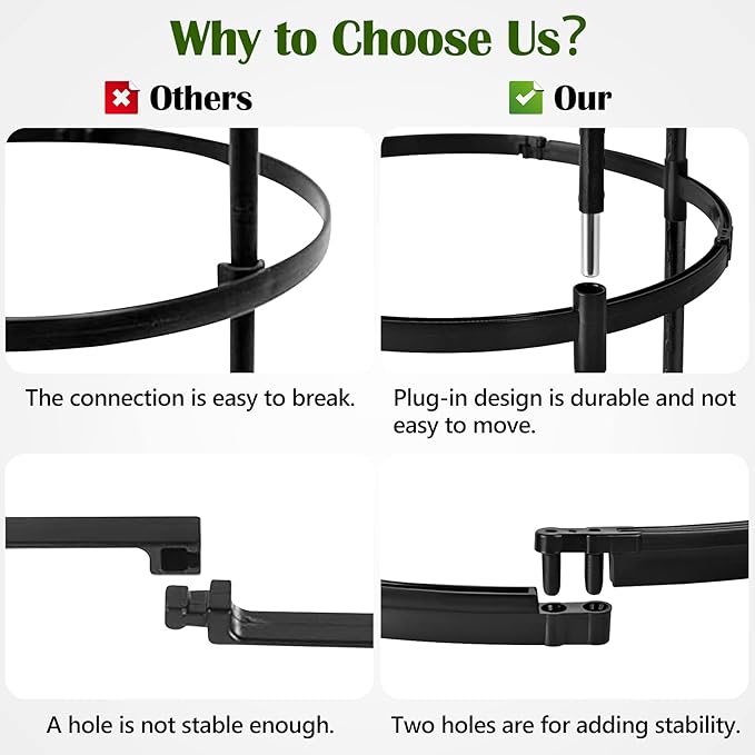 - 【Anti-rust Material】Each plant stake is made of Steel pipe with plastic coated to prevent internal steel tubes from rusting. Resistant to sun damage and fading, gentle on plant stems. Durable plastic support rings are adjustable to help meet your plant's specific support needs