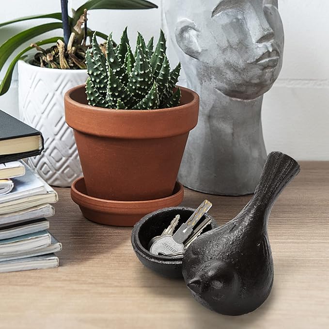 Cast Iron Key Hider, Bird Hide-a-Key Holder, Outdoor Small Garden Statues Ornament, Outside Spare Key Hider Figurine, Indoor Decoration Jewelry Trinkets Box for Ear Studs, Rings, Paper Clips