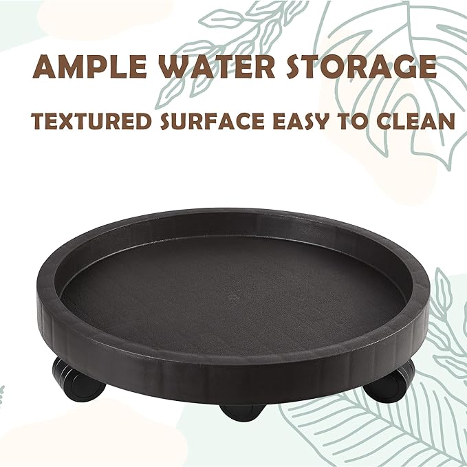 17.5 Inch Planter Caddies Rolling Saucer Caddy with Wheels, Heavy Duty Wheeled Stand for Potted Plant, Round Coaster Roller Base Tray with Casters, Flower Pot Dolly Holder for Indoor Outdoor