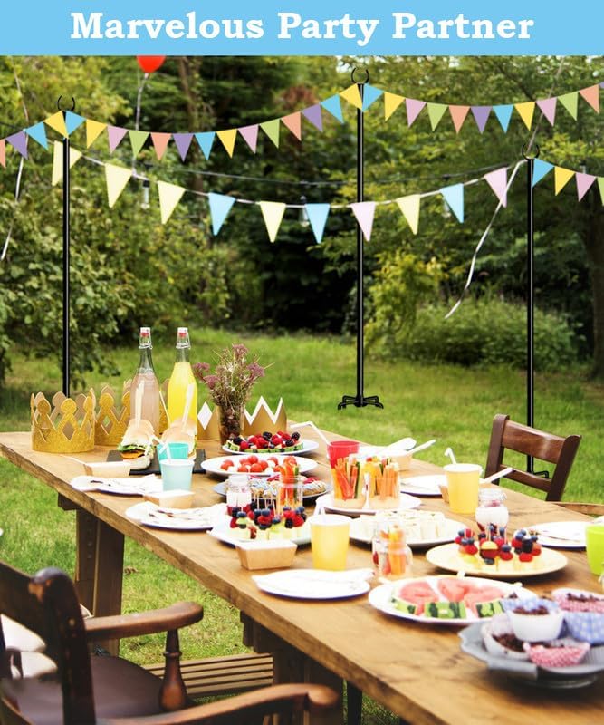 - Good Party Buddy: The metal outdoor string light poles can be used to hang balloons, string lights, small windmills, wind chimes, etc., to decorate your party place and create a happy festival atmosphere.