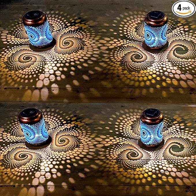 • Gorgeous & Cool Garden Decor: This outdoor lantern has an innovative design that keeps with modern trends. The exterior is pure black with a cool spiral pattern, combined with a cold blue coating inside. In the night, this lantern casting dynamic blue light that is full of technology shadow.