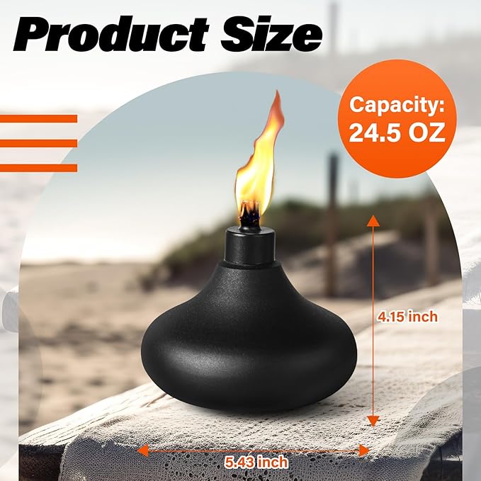 - ✿High Quality Metal Table Top Torches: Our Metal Table Top Torches made of premium metal. durable and lightweight. Each tabletop torches hold approximately 24.5 oz of fuel, allowing the burning time more than 19 hours .