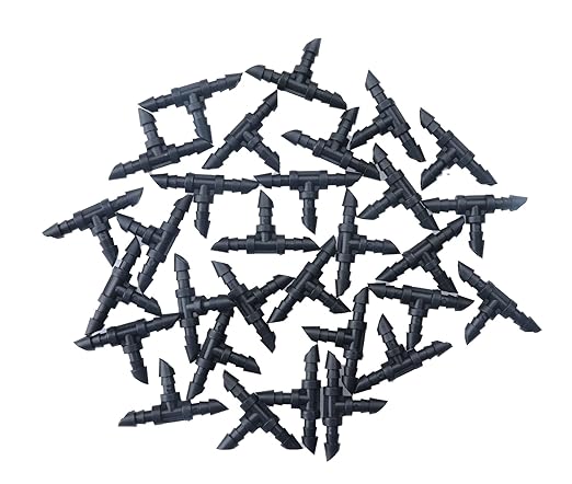 Sowaka 30 Pcs Drip Irrigation Fittings Kit Black 1/4 Inch Tube End Goof Hole Plugs Irrigation Stoppers for Drip Systems Home Garden Lawn Supplies (Tee)