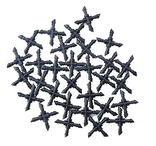 Sowaka 30 Pcs Drip Irrigation Fittings Kit Black 1/4 Inch Tube End Goof Hole Plugs Irrigation Stoppers for Drip Systems Home Garden Lawn Supplies (4-Way Connectors)