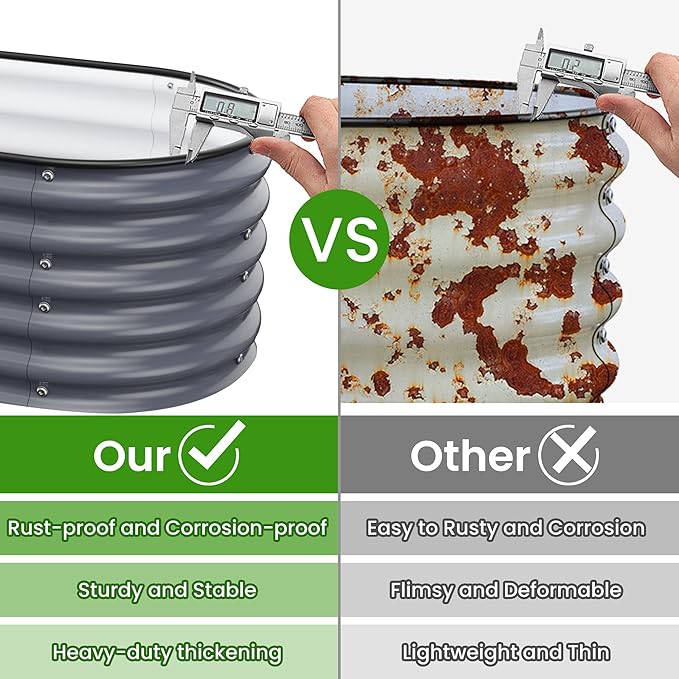 - Strong and Durable: Nossta garden beds Made of 0.6mm thickness zinc-aluminum-magnesium coated steel,its strong anti-rust performance, withstanding rust, rot, mildew, UV rays and corrosion. ensuring up to decades of service life