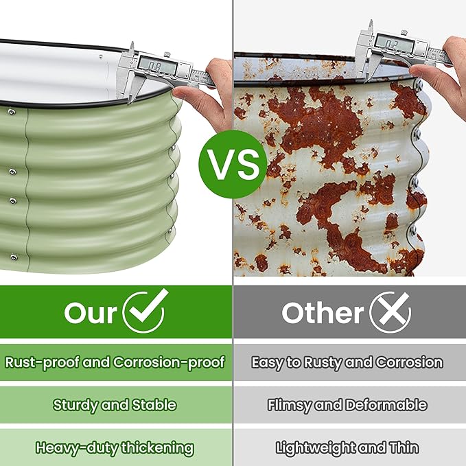 - Safety and Eco Friendly: We use USDA-approved paint that is 100% safe and eco friendly,so you can use our products with peace of mind.Plus,Our garden bed features an oval design that eliminates sharp corners and is covered with heavy-duty rubber edging to prevent injuries.